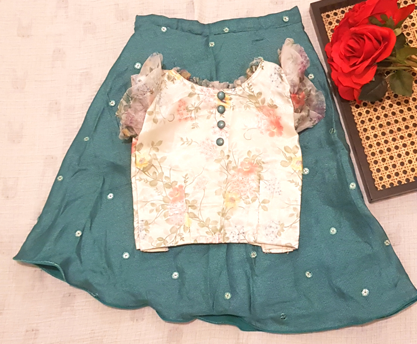 Print/Design – Floral organza top with ruffle sleeve and floral organza skirt