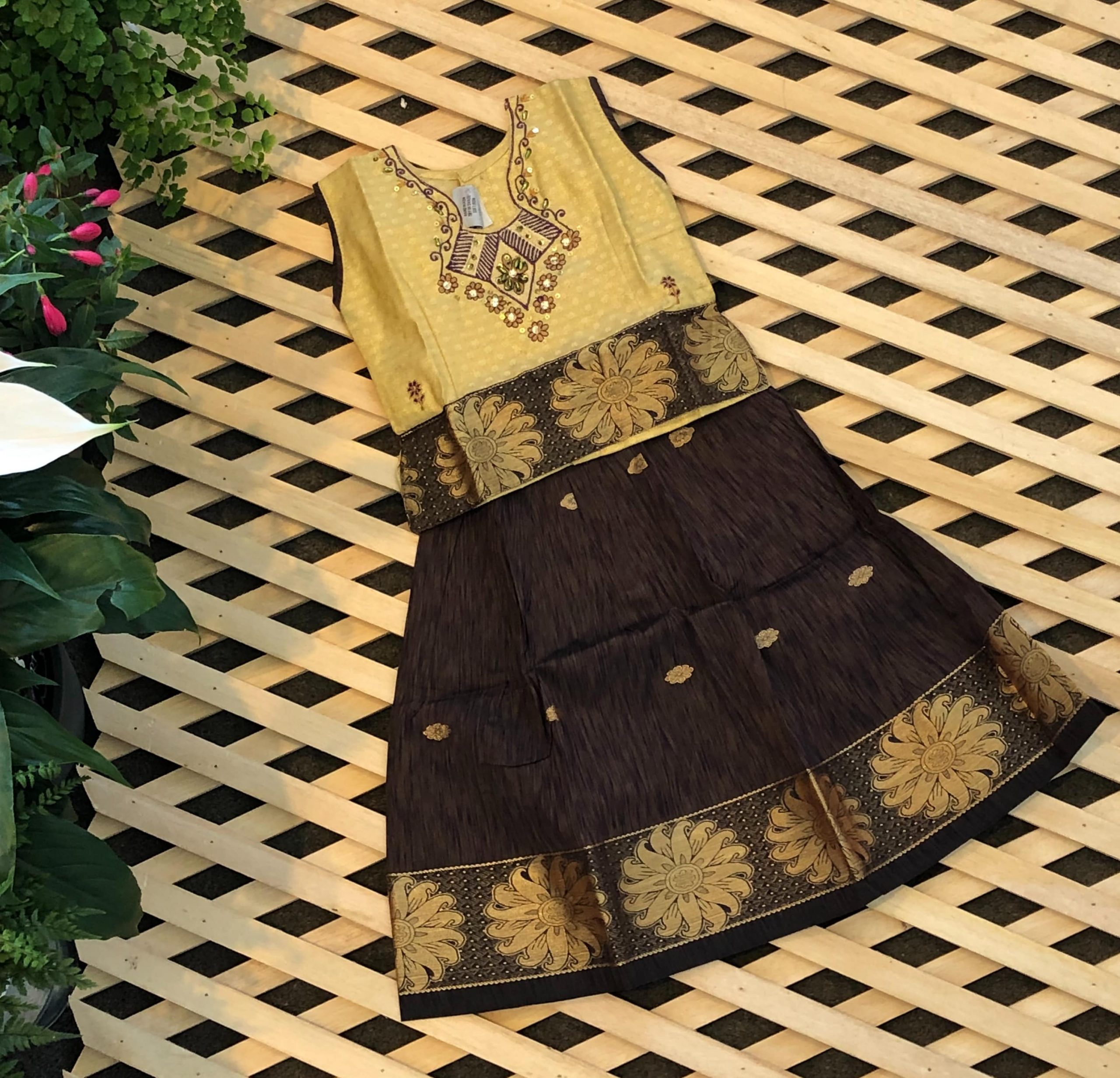 Print/Design – Embroidery Neck design with floral border skirt